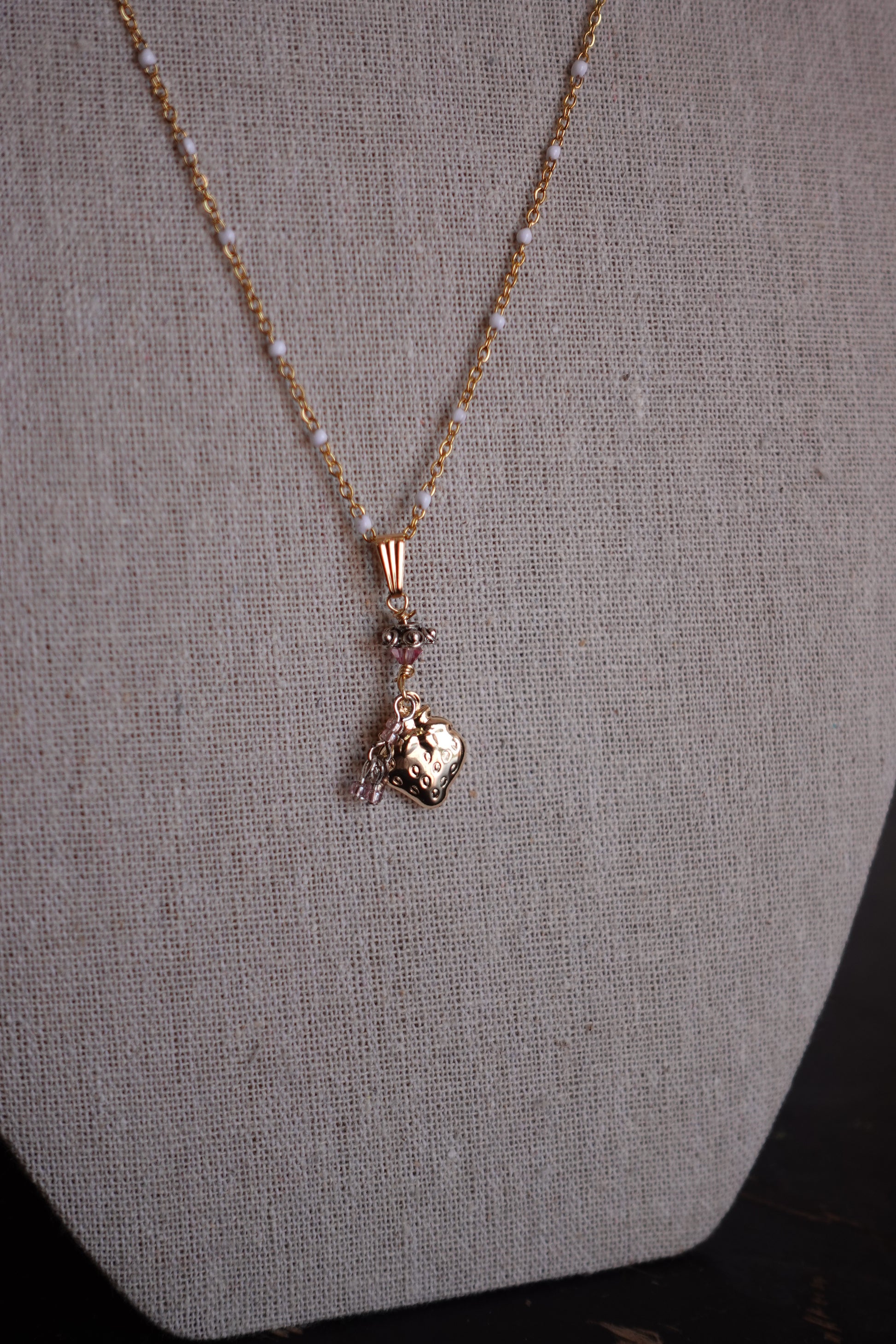 Gold-filled chain (will not tarnish) with gold-plated brass links that may naturally tarnish over time due to wear, moisture, oils, and air – made with love in Coquitlam.